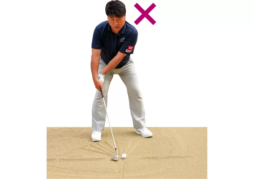 手首が体の中心から外れた時点で、手打ちのバンカーショットになってしまう。