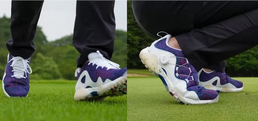 シューレースタイプもボアタイプも、ヘッドスピード42m/sくらいではビクともしない安定感です。