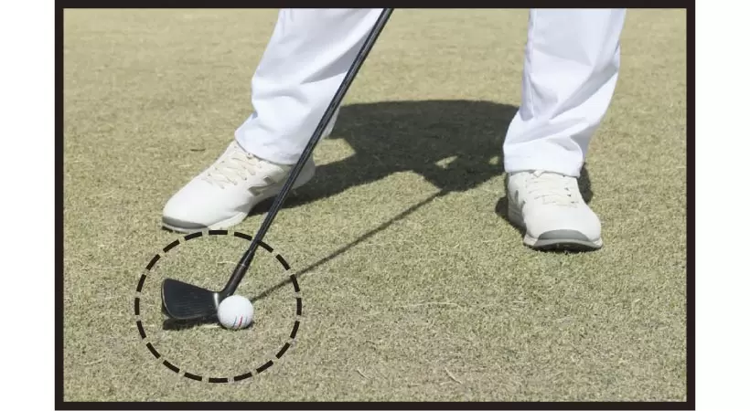 フェースをボールに対して真っすぐ動かそうとするほど、手元が先行して動いてしまいやすく、フェースが開いてヘッドの“ネック付近”でボールをインパクトしてしまう。