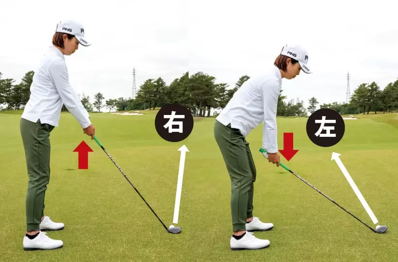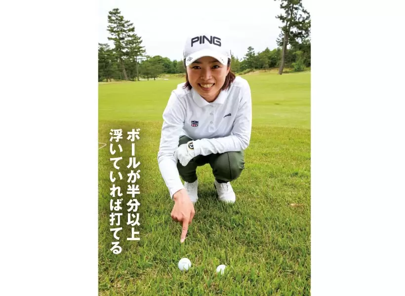ボールが高い位置にくる。クラブを短く持ちボールに近づいてアドレス。