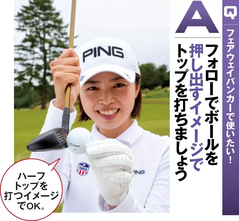 弾道をイメージした流れでスイングするとボールを上げにいってトップやダフリになる。