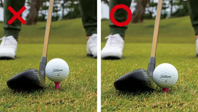 ボールの位置はドライバーよりもボール1個分ほど内側にするのが目安。