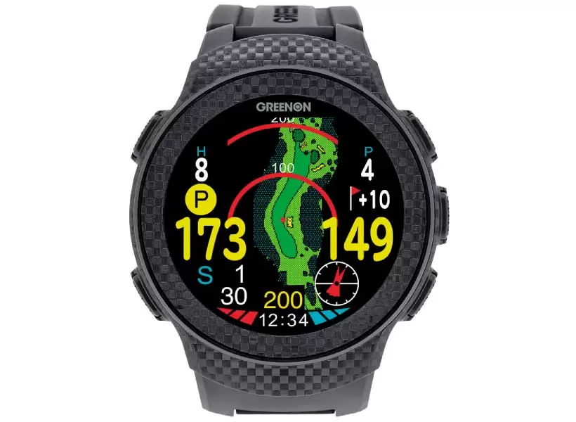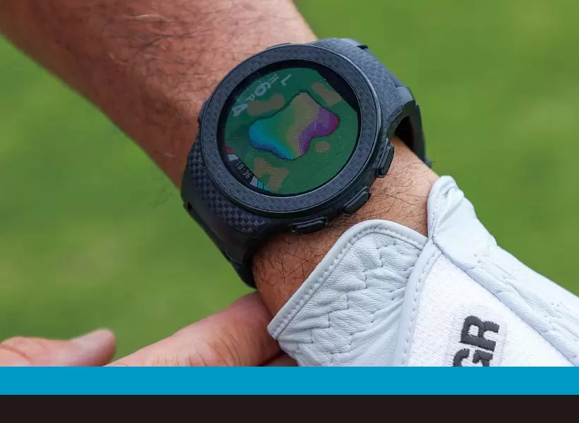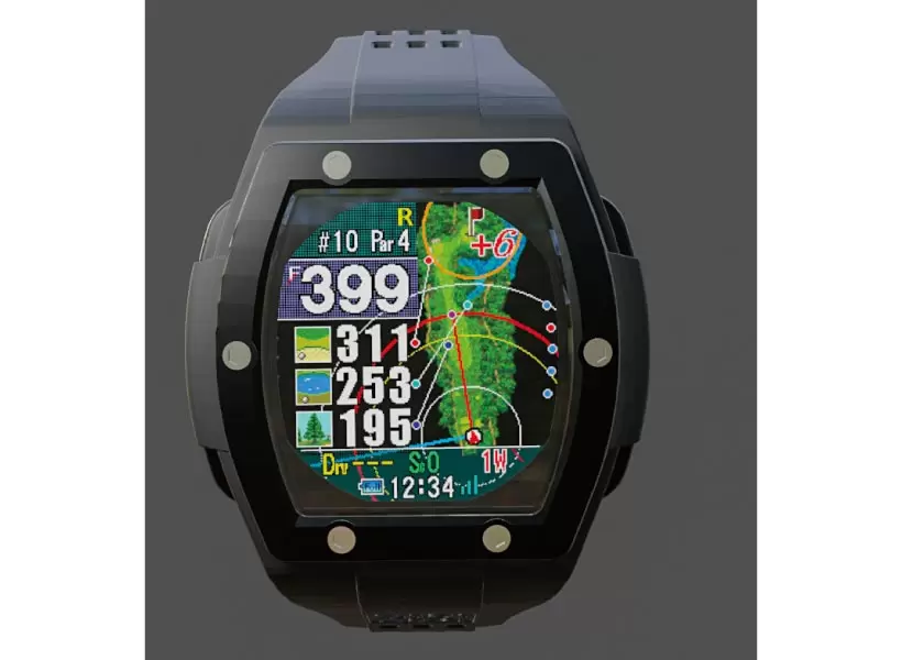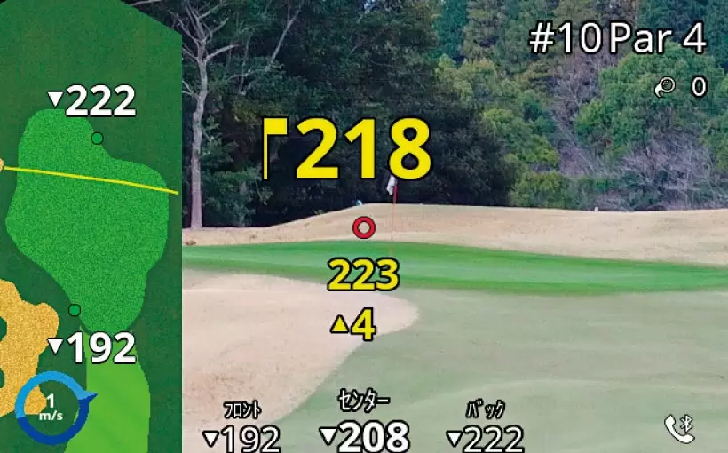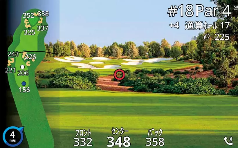 GPSデータを基にグリーンの3点(フロント、センター、バック)やハザードまでの距離を表示。