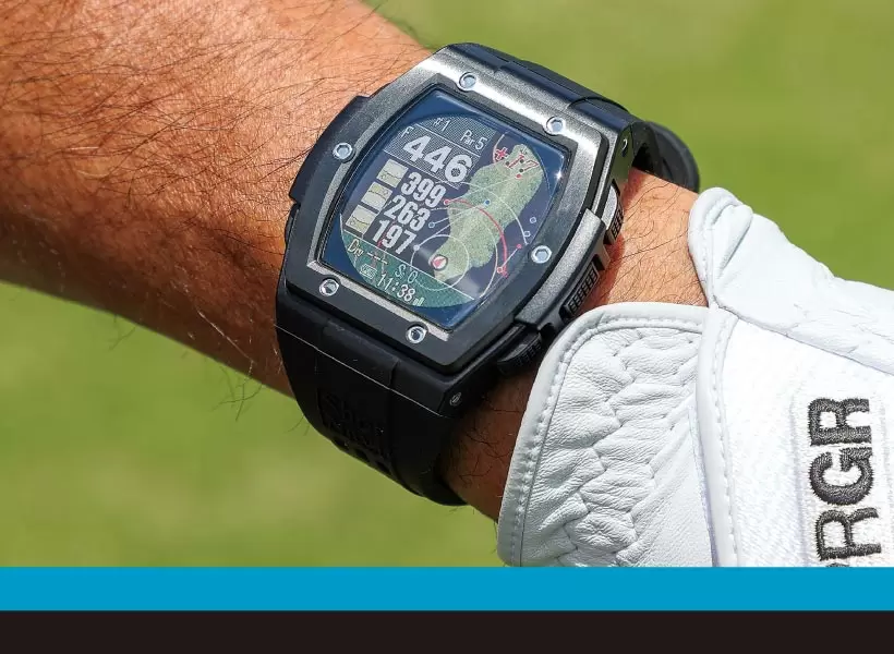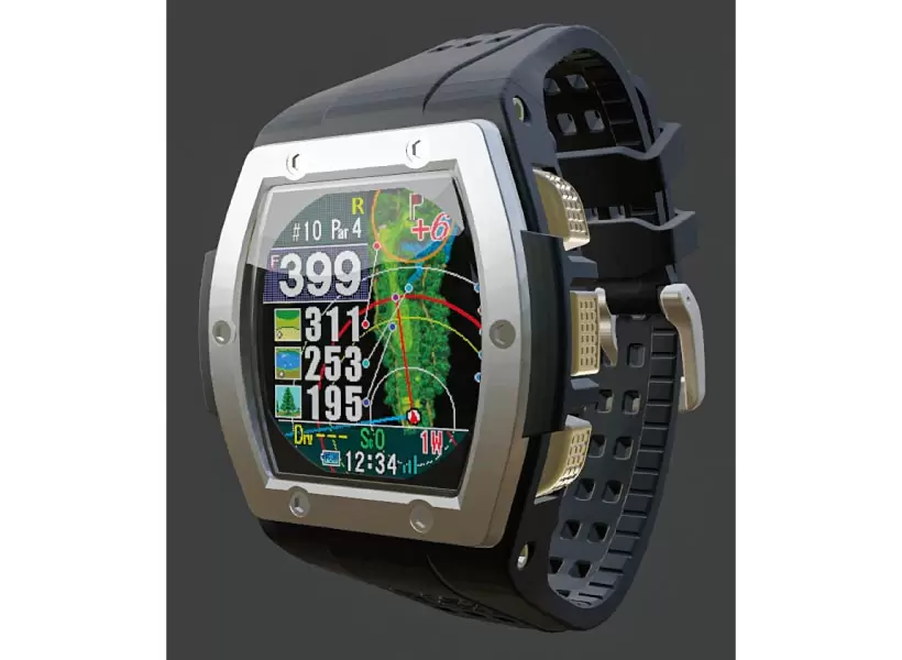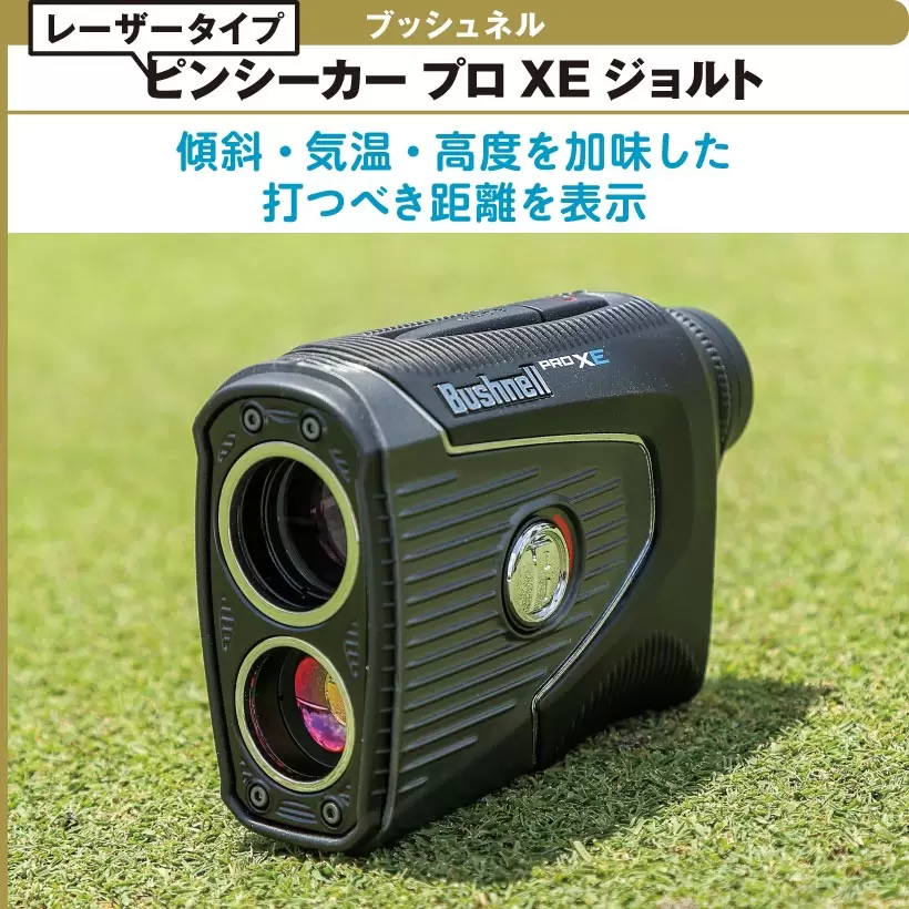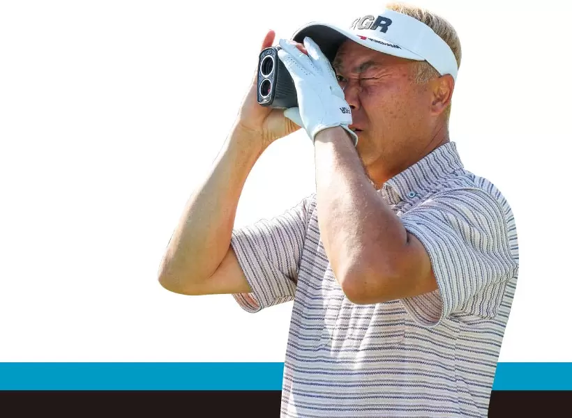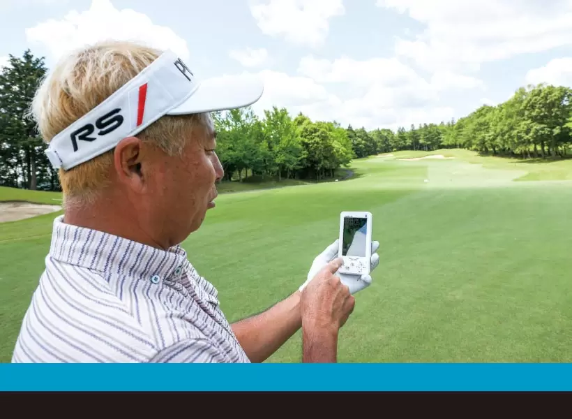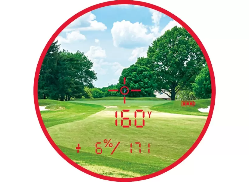 レーザーによりピンまでの正確な距離と高低差を測定し、打つべき推奨距離を表示。