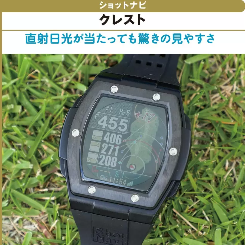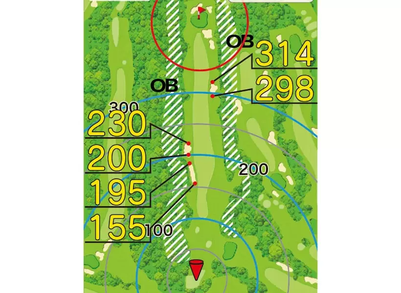メインターゲットまでの距離を大きく表示。ショットディスタンスの計測は自動でできる。