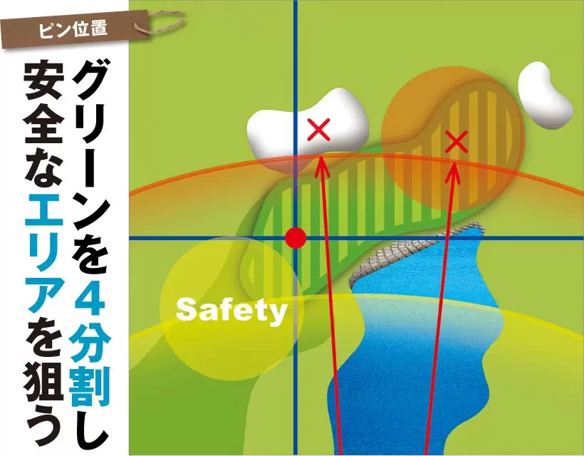 [ピン位置]グリーンを4分割し安全なエリアを狙う