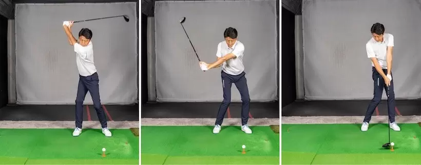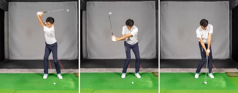 全ての番手で同じようにスイングできれば番手に合った入射角でインパクトに向かえる。意識的にアッパーに振ったり、上から打ち込む必要はない。