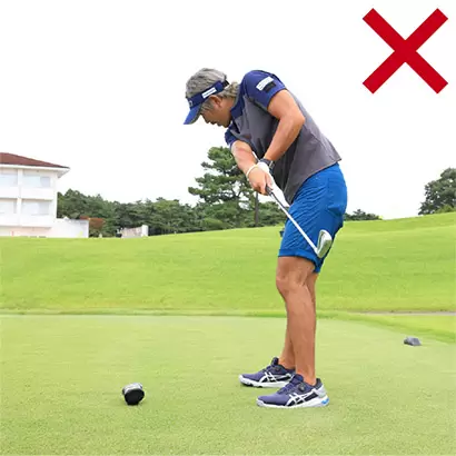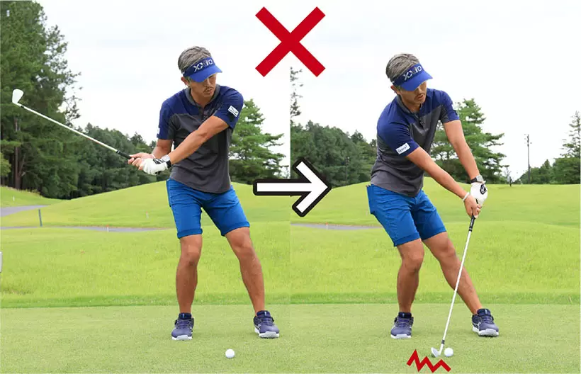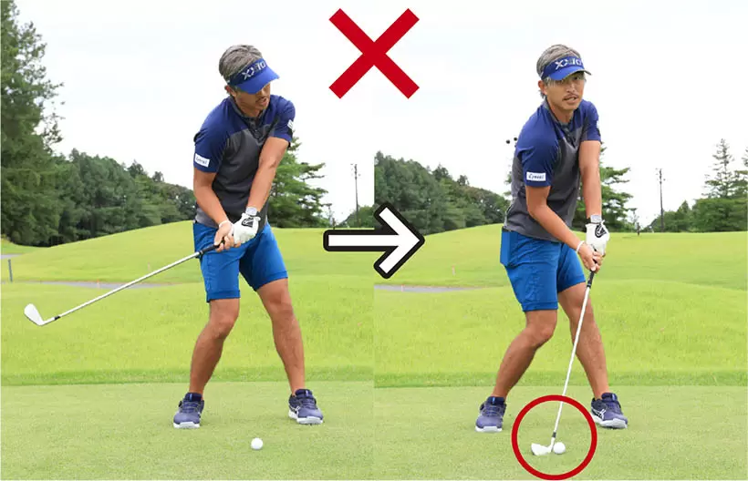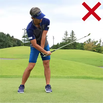 手打ちはハンドファーストインパクトの大敵。シャンクのほか、ヒッカケも生じやすいので注意。