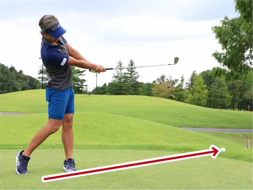 手先だけではボールを飛ばせない。こうなりやすい人はパワフルなハンドファーストインパクトが作れていない証拠。