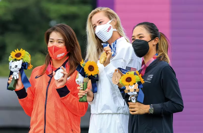 最終日に9バーディで猛追した稲見は、最終ホールをネリー・コルダと並ぶトップタイで迎えるも、ボギーを叩いてリディア・コーとのプレーオフに。プレーオフ1ホール目で稲見がパー、コーがボギーとなり銀メダルが決定。