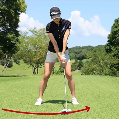 ボールをさらに内側に置いて同じスイングをすれば、自然にダウンブローに打てる。
