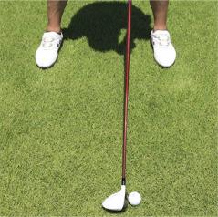 フェアウェイウッドのスタンス幅のドライバーとアイアンの中間くらいが理想的だ。