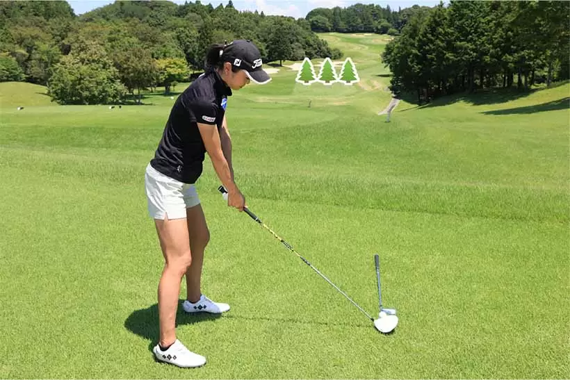 フェアウェイ上に3本の木を想定しよう。真ん中の木を向くのがスクエアな構えだ。