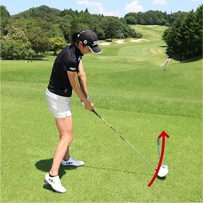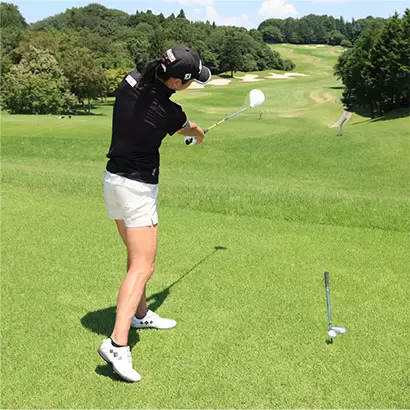 スイング自体はドローとほぼ一緒。感覚としてはインサイドインの軌道だ。