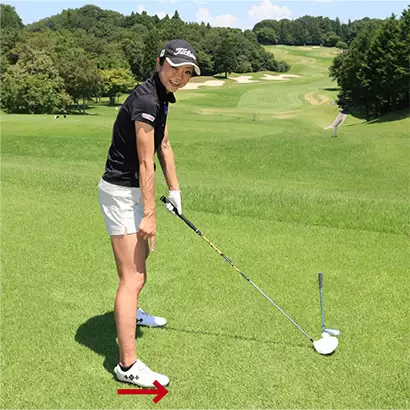 軽くクローズに構えるぶんだけ、インパクト以降の腰の回転が少し制限される。
