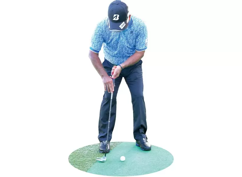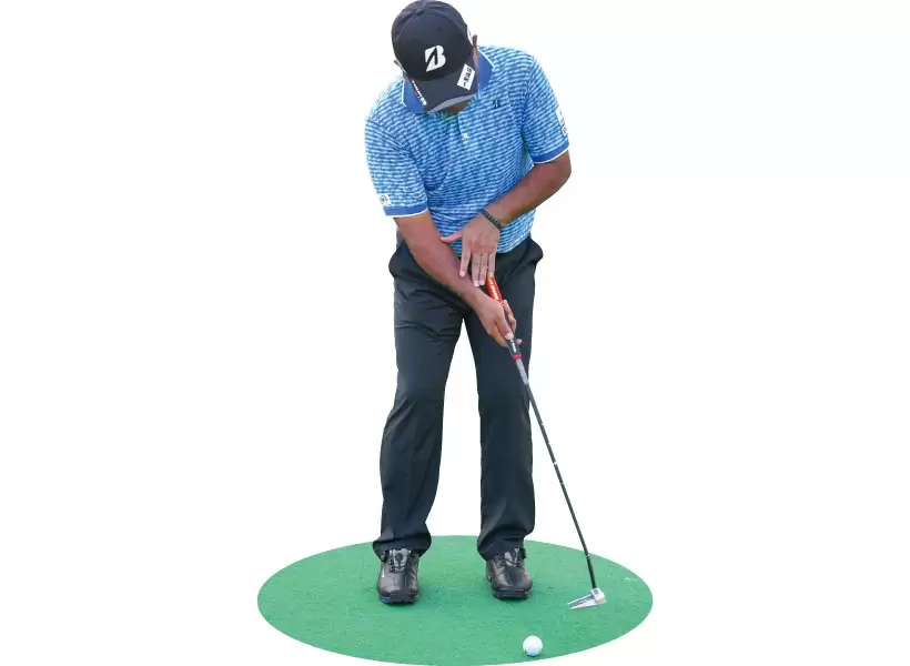 ショートパットは左手だけで打つ。右手は支えるだけ。