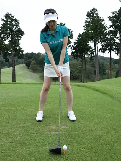ドライバーのスタンス幅は自分の肩幅くらいか、それよりも少し広くしよう。両ツマ先は軽く開いておくのがオススメ。