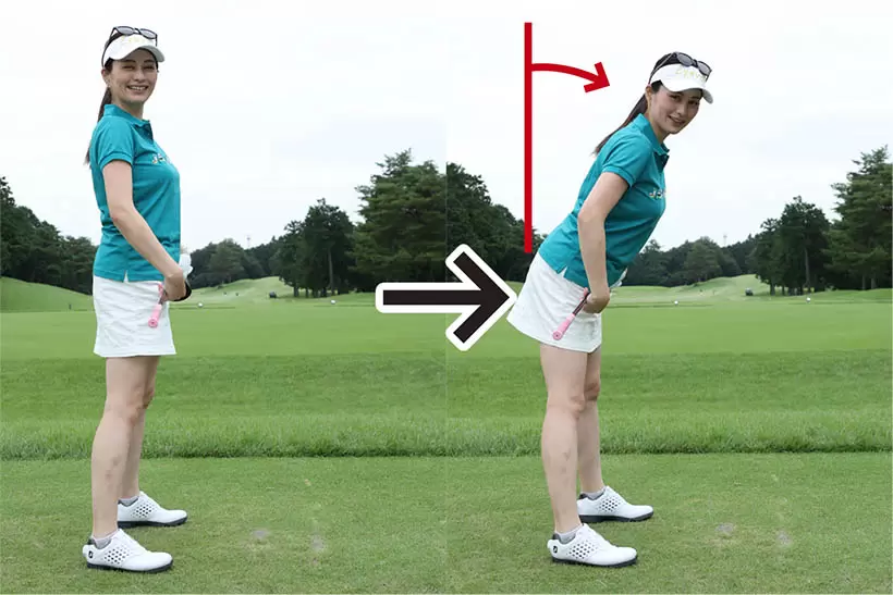 軽くお辞儀するように上体を追ったとき、骨盤も一緒に前傾させるのが大切なポイントだ。
