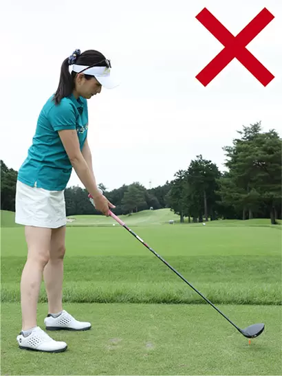 スクエアに立ったつもりでも、クローズスタンスでカラダが目標の右を向いてしまう人が多い。