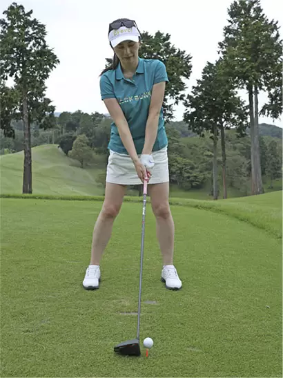 左ツマ先を軽く開いて立てば肩のラインの間違いが少ない。スクエアに構えたときの視界を見慣れておくことも大切だ。