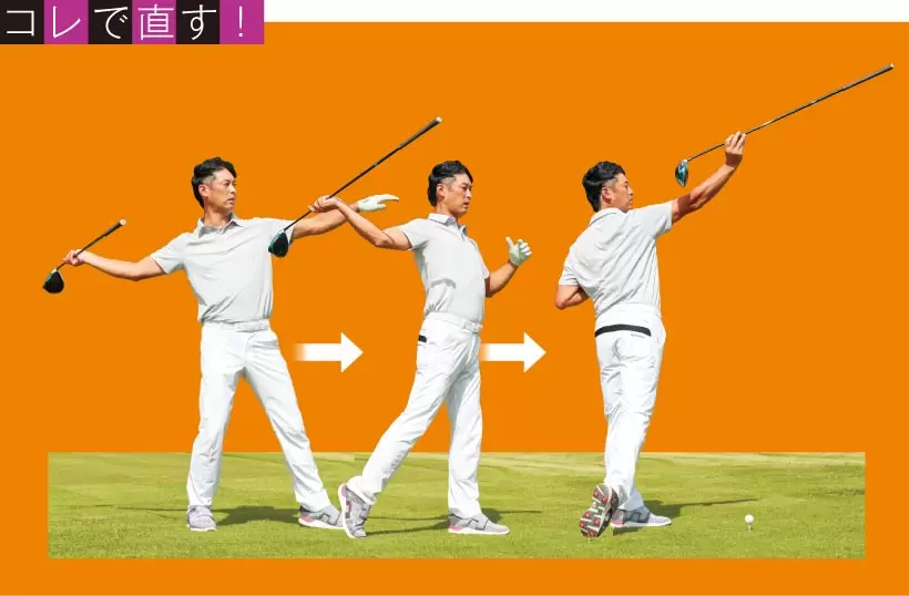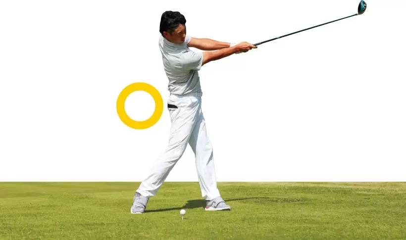 慣性が使えないと、たとえ体幹が捻れても手でクラブをトップまで持っていき手打ちになる。