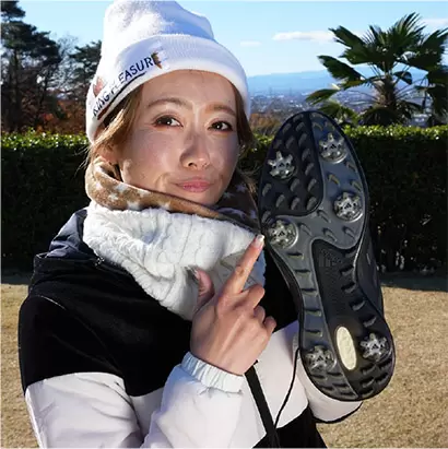 セーターの上にダウンベストを着るのも冬ゴルフの定番スタイルです。