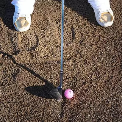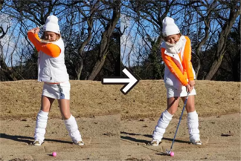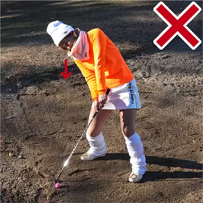冬のバンカーではフェースを開いて構えるのは危険だ。