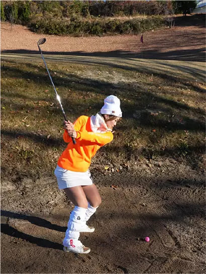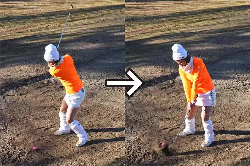 フォロースルーを低く止めてもバンカーからカンタンに脱出できる。