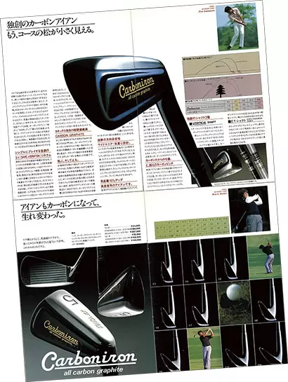 飛びを強調した当時の広告ページ。下の方に泉川ピートプロがクラブを振っている写真も。