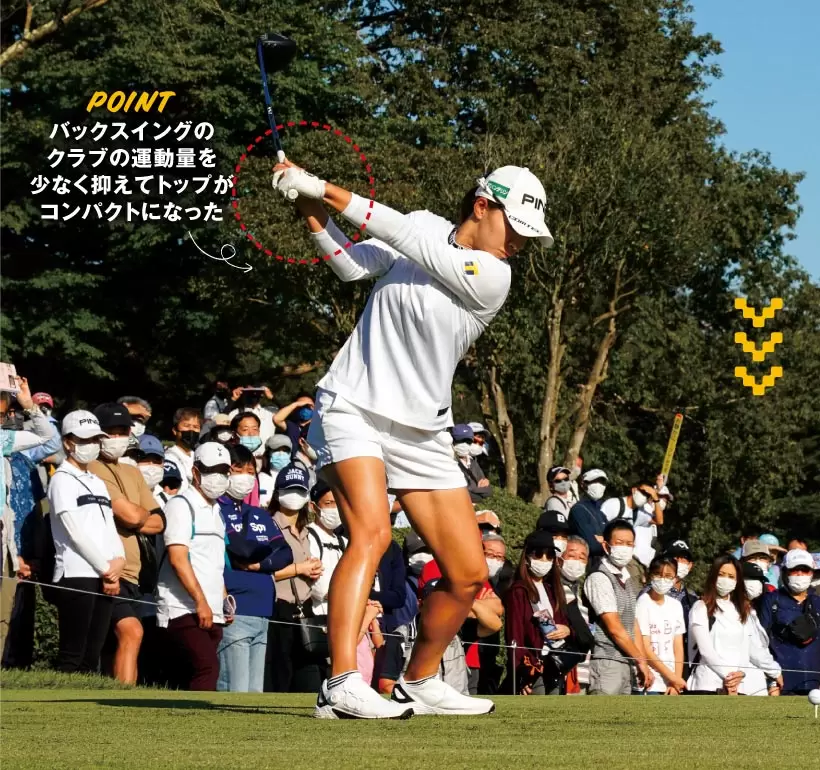 POINT バックスイングのクラブの運動量を少なく抑えてトップがコンパクトになった