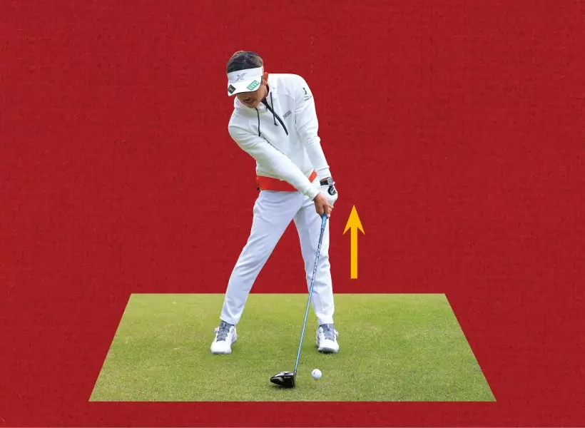両足を緩めないでバックスイングすれば捻転が深くなり、力強いトップが作れる。