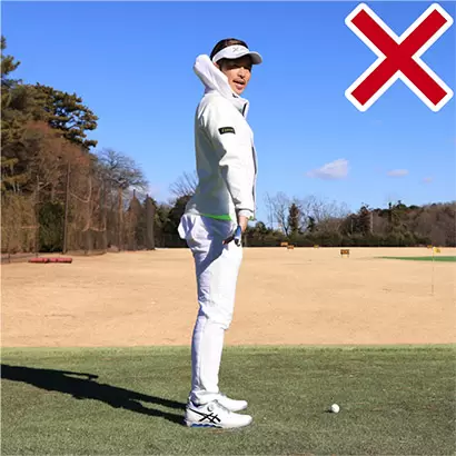 アイアンでダフリやトップが出やすい人は、骨盤が立った棒立ちの構えになっている人が多い。