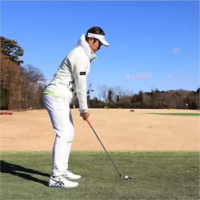お尻を少し持ち上げて、両ヒザを軽く曲げてアドレスが完成。