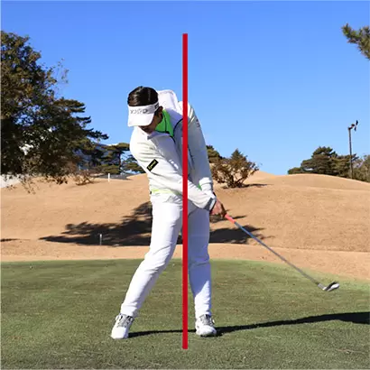 バックスイングで上体が沈むと、その反動でインパクトでは上体が起きてしまいやすい。
