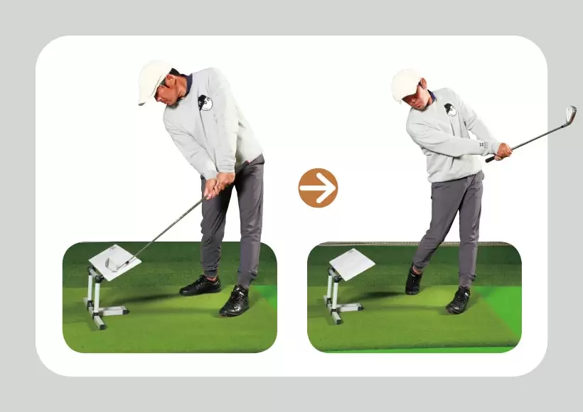 グリップエンドの引きつけが足りないと、フェースが返りやすくなり、フェードのつもりがフックになることも。