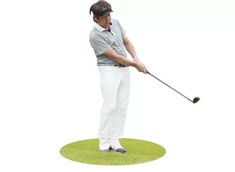 アドレスの時点で、アッパー軌道で打つ準備はできているので、上げようとする動きは不要。