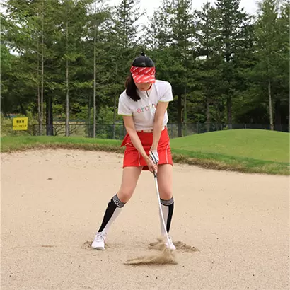 ボール周りの砂をピンに向かって飛ばす意識を持とう。