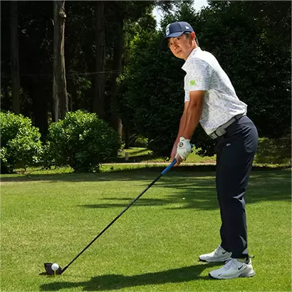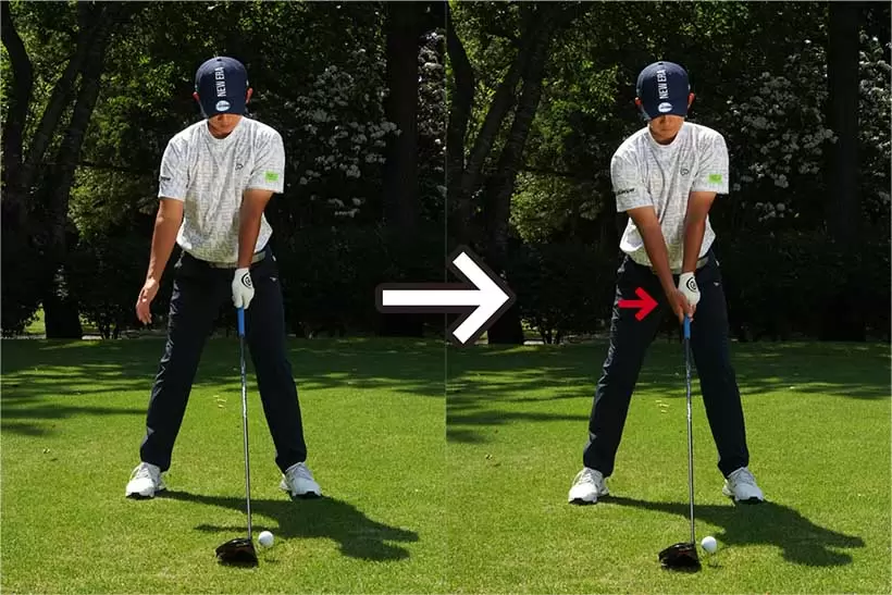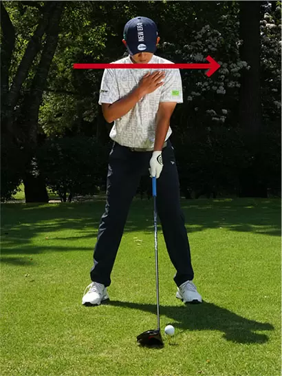 ドライバーはボールを左足の前にセットするから肩がどうしても開きやすい。遠くを見ようとすると余計に肩のラインがオープンになる。