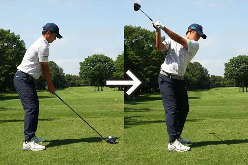 トップとフィニッシュを低く抑えたコンパクトスイングを心がけよう。