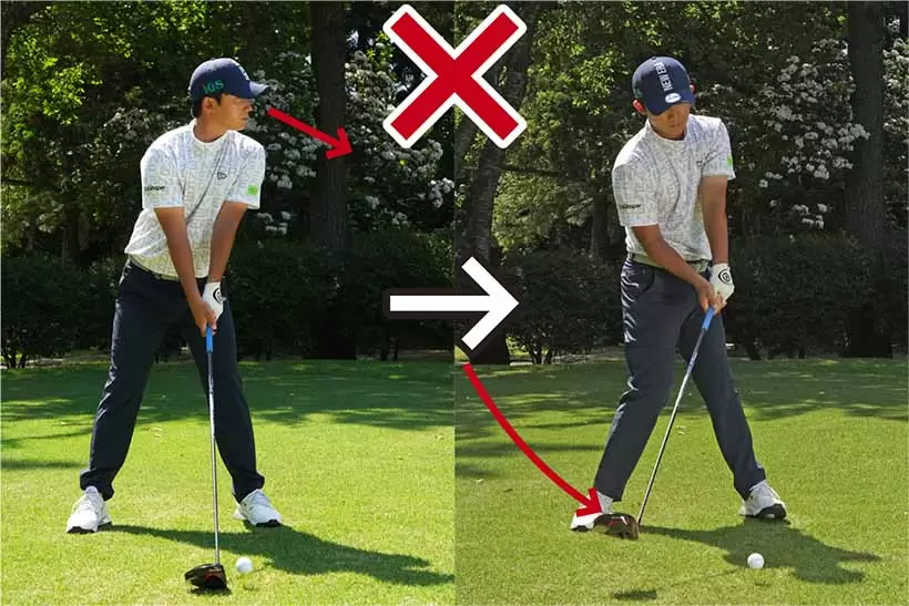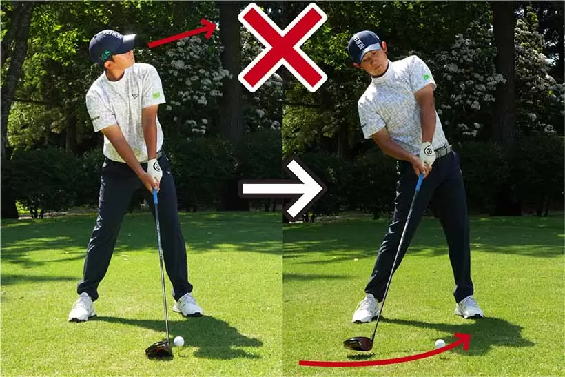 練習場のように目線を常に水平にキープすることが大切なポイント。