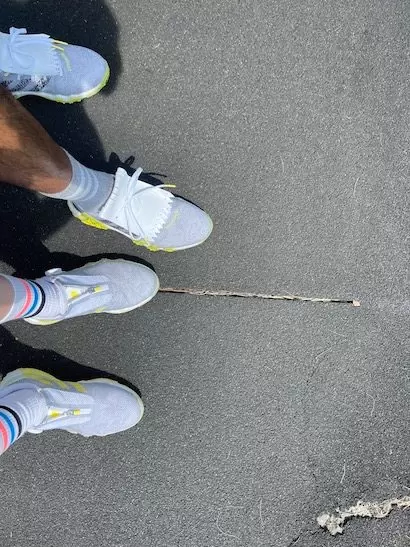 このように、ご夫婦やカップル、友人とお揃いで揃えるのも○。写真上は、アディダスゴルフのKIDOWAKIさんの足を拝借。アッパーの“ヒラヒラ”は、ほかのシューズから取り外して付けたとか。おしゃれー!