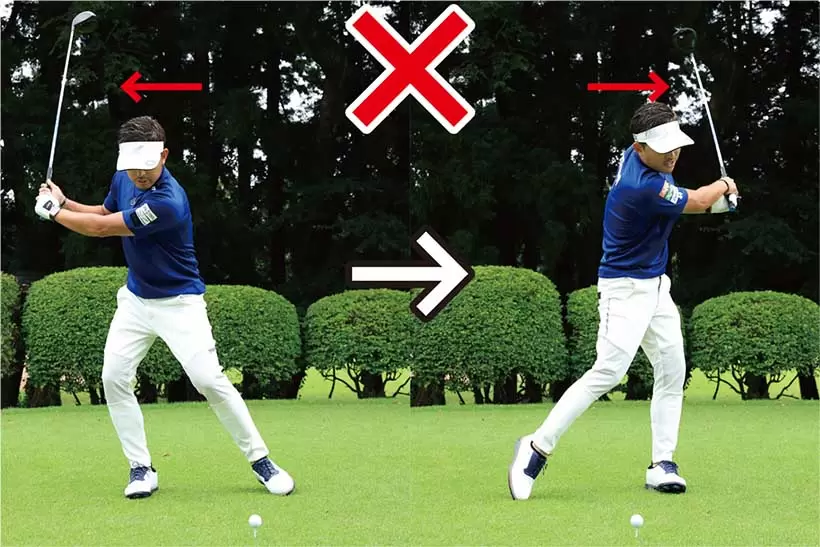 バックスイングで頭が大きく右に動くとダウンスイング以降も左に動いてしまう。