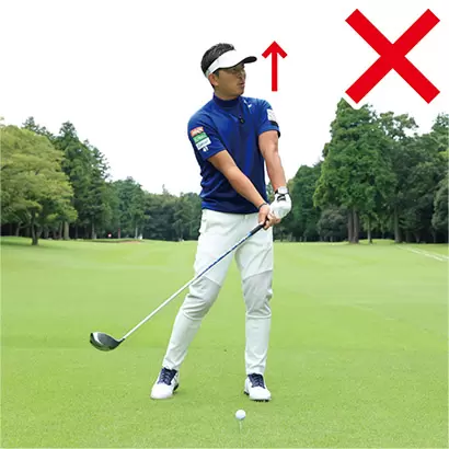 「インパクトで上体が起きる=ヘッドアップ」はミスの原因となるマイナス要素だ。