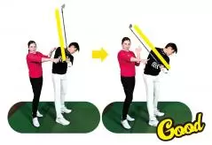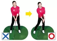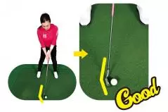 ヘッドをマットのヘリに引っかけて、インパクトのカタチを体感してみましょう!