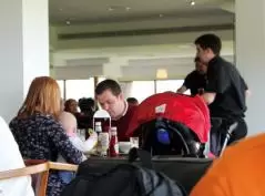 セントアンドリュースのコース内にあるレストラン。ベビー カーで赤ちゃんと一緒に来ていた家族もいた。