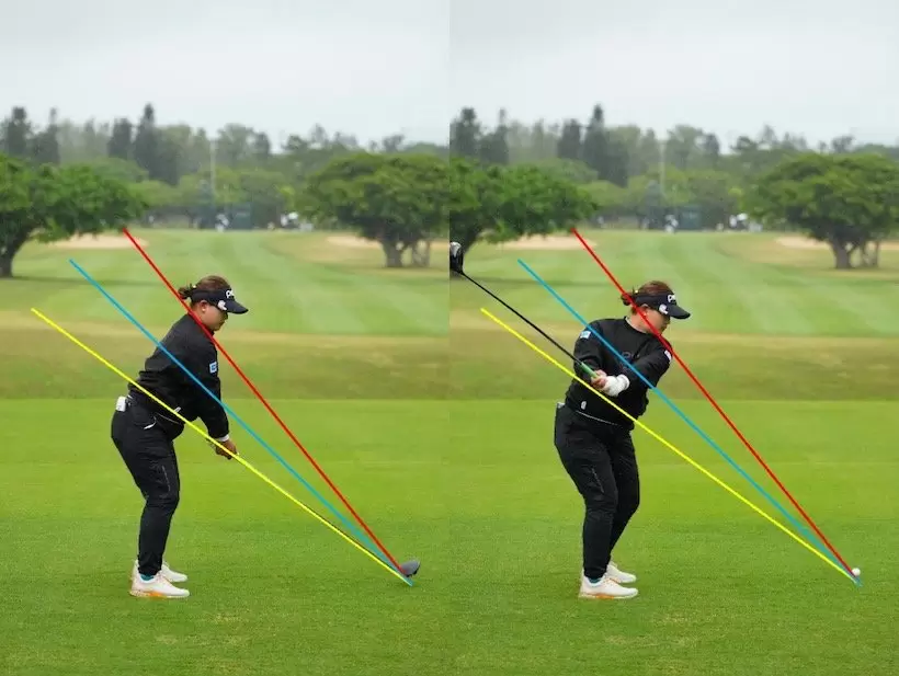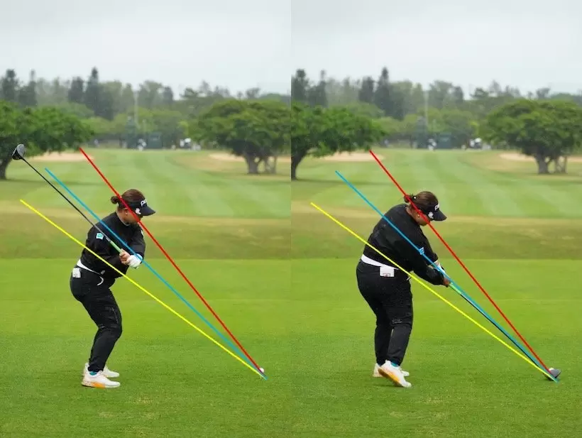 写真は開幕戦の初日のもの。この時はダウンスイングもインパクトも、ほぼプレーンラインと重なっている。