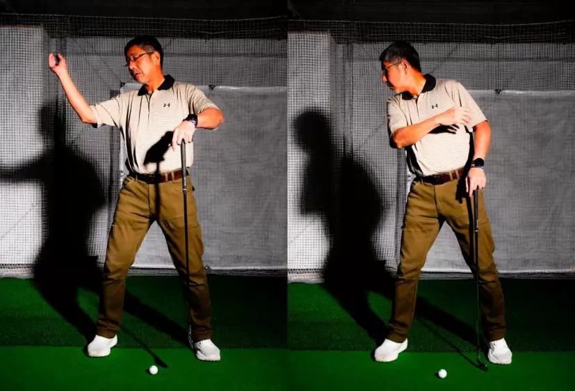 フォローでシャフトが地面と平行を過ぎてから顔が上がるイメージ。