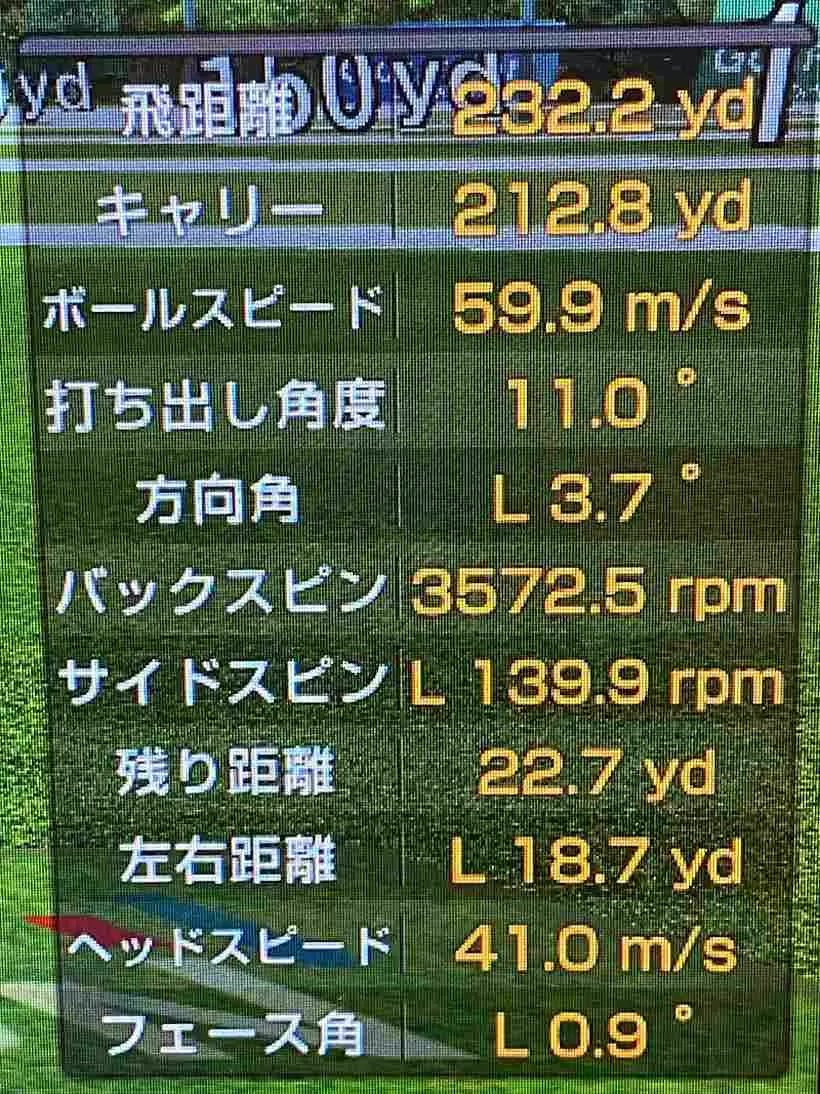 飛距離:232.2ヤード ヘッドスピード:41.0m/s