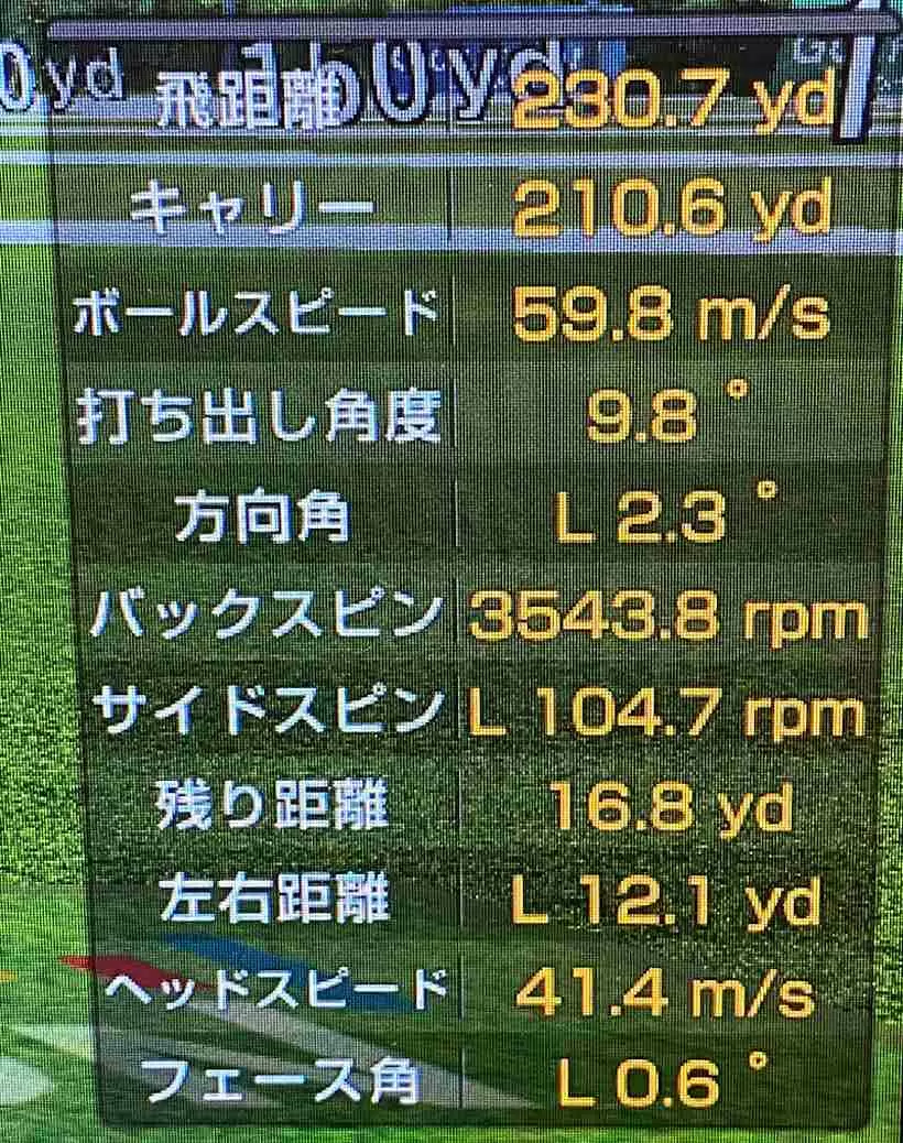飛距離:230.7ヤード ヘッドスピード:41.4m/s