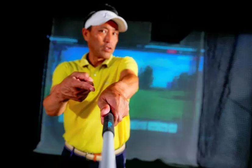 シャフトを回すことでフェースを閉じる! この動きをスプリットハンドで打ちながらやる。